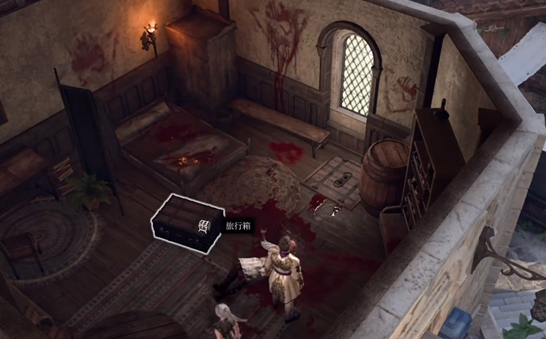 3、我们从这里进去之后,有一个箱子和一个尸体,简单搜索一下就可以打开门到地下室里。