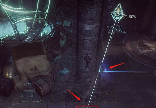 5.最后两个炮台我们只需要在装置与柱子中间的位置就能完美闪避。