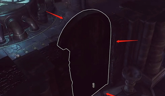 3.这里我们继续往里面能发现两个炮台,可以直接躲在柱子后面。
