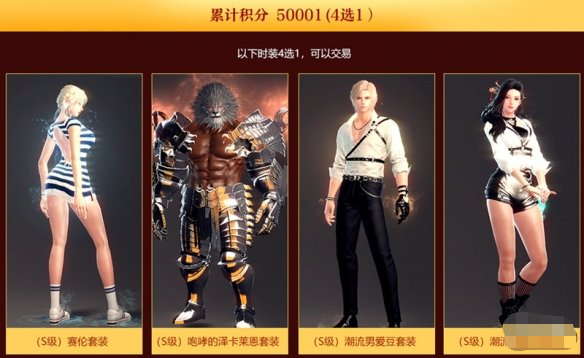 最后,埃切尔欢迎商店开启,商城之中消耗马赫印记可于网页中获得累计积分,根据所达到的累计积分领取不同奖励,当英雄们累计积分达到50001后,将从以下这四套可交易的时装中选择一套获得。
