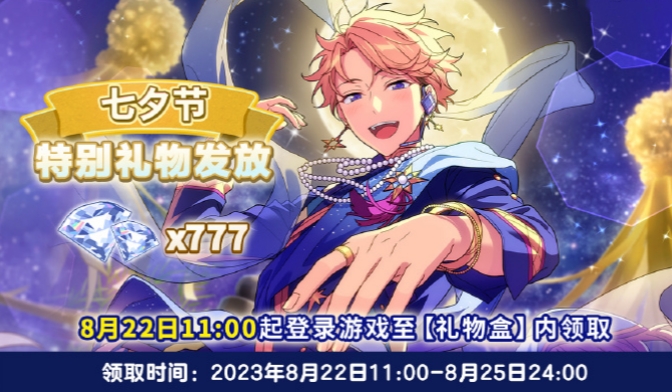 七夕佳节,偶像梦幻祭2为制作人们准备了丰厚的七夕礼物:钻石*777;