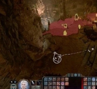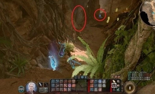 1.我们需要在德鲁伊营地使用生存鉴定,通过就能找到隐藏入口,在这里进去就能看到地精在里面,这里需要注意我们不能靠近雕像,如果靠近他就会攻击我们,这里让一个友军使用潜行过去把雕像机关关闭就行了。