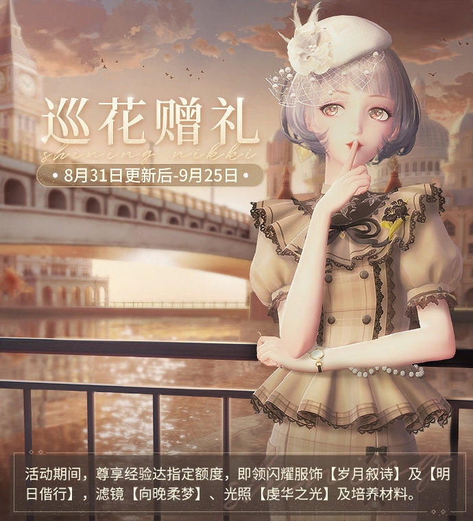 活动方式:搭配师在活动期间,充值尊享经验达到指定额度,就能获取闪耀服饰【岁月叙诗】啦。