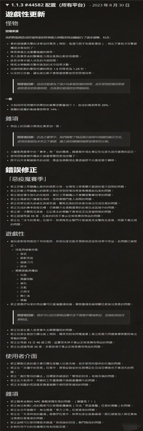 《暗黑破坏神4》官方今日宣布,1.1.3补丁现已更新,本次补丁的重点是削弱了具有控场效果的怪物能力与精英怪词缀,此外还进行多项修复和调整,但并无职业平衡性改动。