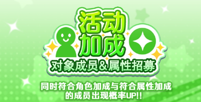 特别说明:大家每从活动加成对象成员与属性招募中获得1名成员,即可获得1枚“招福!祝颂的初阳招募贴纸”,大家可以在交换所兑换成员或道具喔。在本招募结束后,无法交换的招募贴纸将自动继承为星光贴纸,星光贴纸可以在星光贴纸交换所进行交换~
