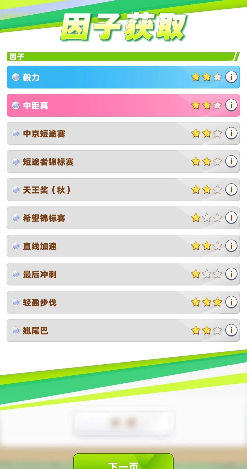 特别提醒:白色因子的质量比数量更重要,选择合适的技能去适配比赛是最好的方法喔。
