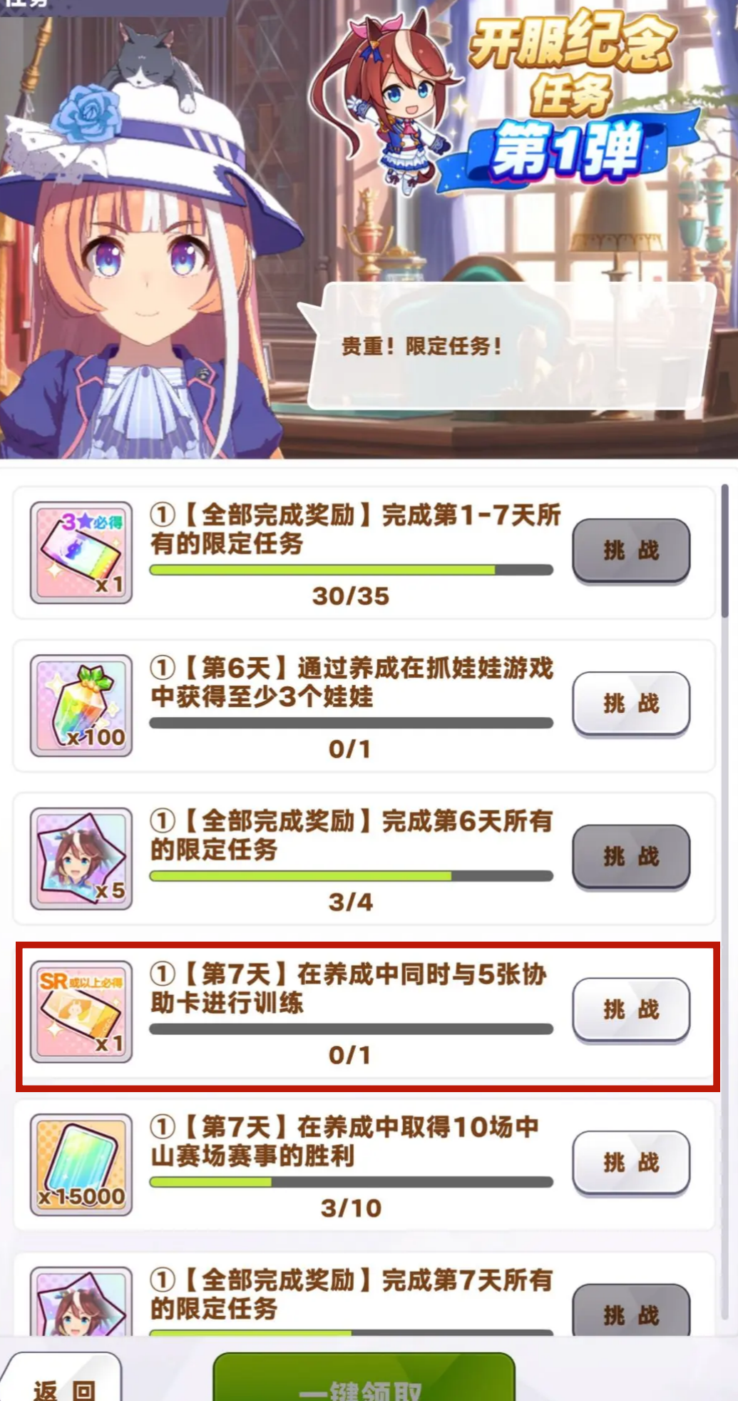训练员在做开服纪念任务的时候要看清任务要求和使用的卡片;