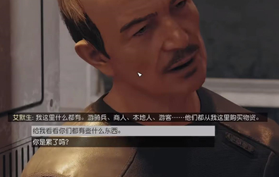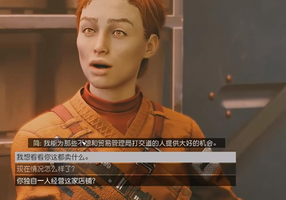 我们下飞船之后往前走,木门口面就是艾默生商店。