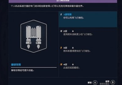 1、具体的解锁方式是完成群星的任务,完成后能够解锁飞行背包,消耗技能点点亮就能用了。