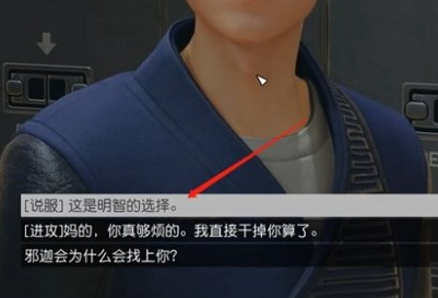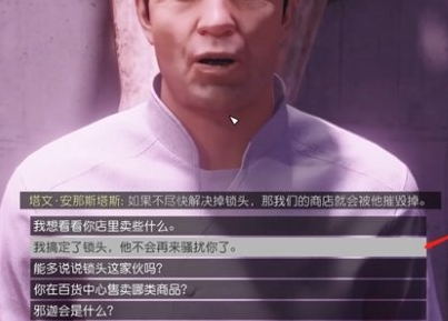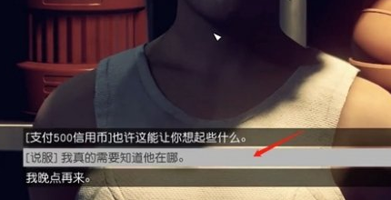 3、先到仓库找锁头,与他交谈之后对它使用说服,绿色的选项,成功率更高。