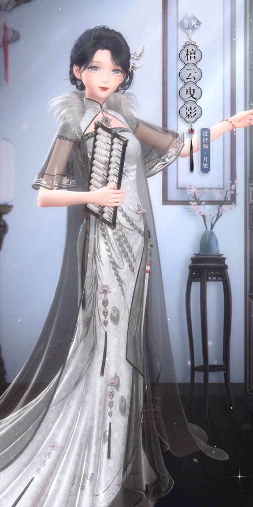 搭配师在活动期间点击【获取礼服】按钮,使用“楠木算盘”即可进行限时感应获取【烟容曳影】套装啦!