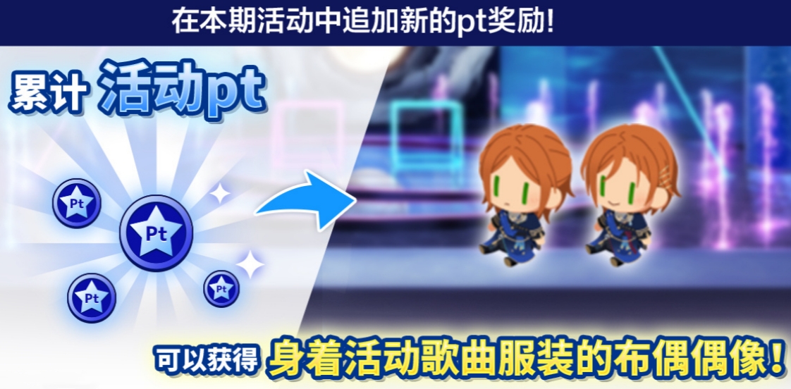 本次演唱会活动的pt奖励中,还追加了身着活动歌曲服装的布偶偶像,这么可爱制作人们不要错过啦!