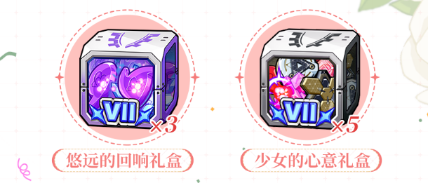 七周年将上线【悠远的回响礼盒】、【少女的心意礼盒】,舰长参与活动即可获得礼盒,并从礼盒中选取奖励。