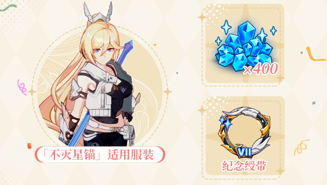 七周年活动期间,累计登录可以获得S级角色自选卡、水晶、补给卡等奖励喔!