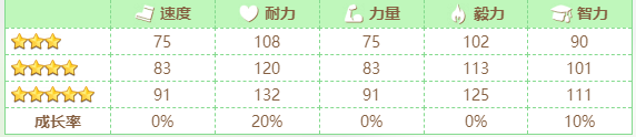 以下是好歌剧的基本属性,想要培养好歌剧的训练员可以先参考参考喔。