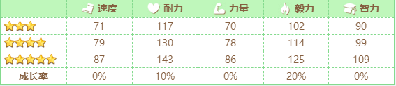 以下是米浴的基本属性啦,想培养米浴的训练员可以多多参考。