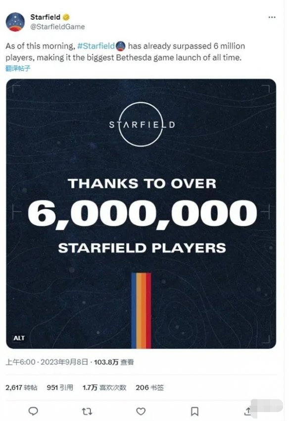据悉,目前《星空》的玩家数量已经突破了六百万,成为了B社历史上玩家数量最多的游戏。此前,菲尔・斯宾塞曾宣布在游戏发售的当天,同时在线玩家数量突破了100万峰值。