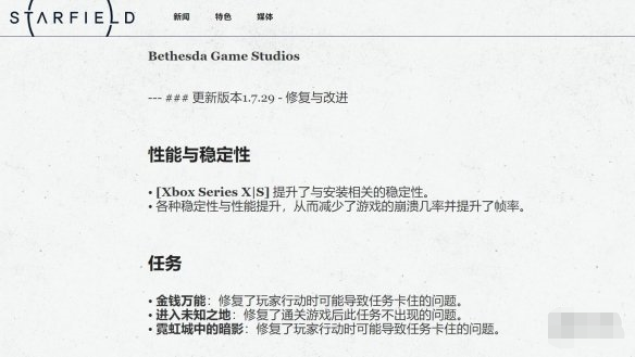 B社今天为《星空》发布了首个更新补丁(更新版本1.7.29),提高了游戏的性能与稳定性,并且修复了几个任务bug。官方表示,他们将之后会定期更新社区呼声最高的各种功能,DLSS、HDR校准等功能都在计划中。