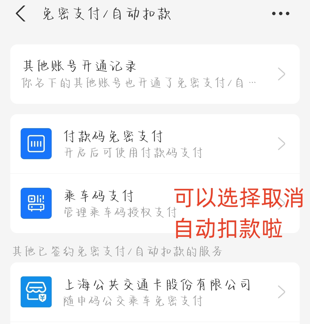 4、点击后就进入【免密支付/自动扣款】页面了,大家直接选择想要关闭的自动扣款项目就OK啦!