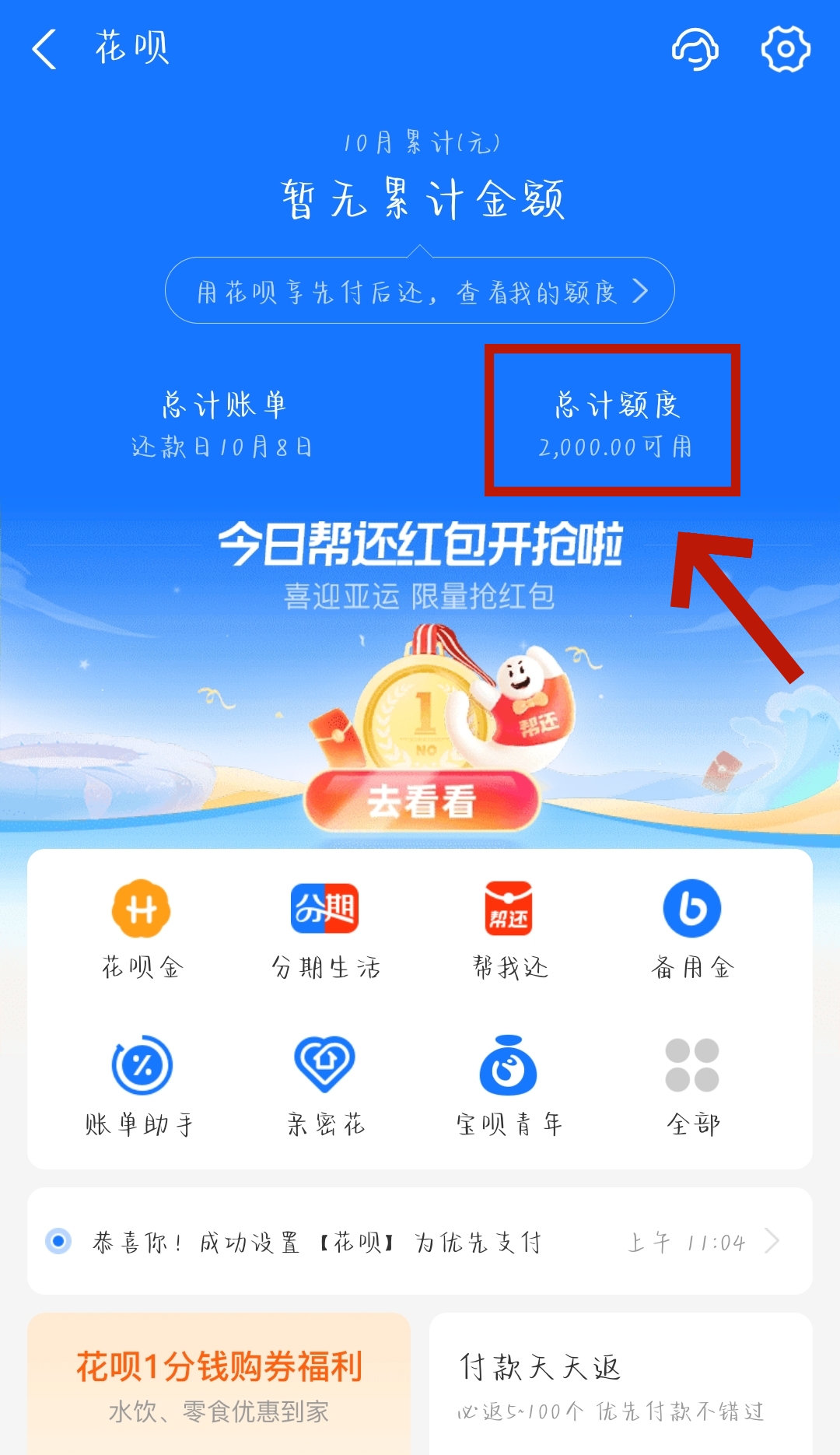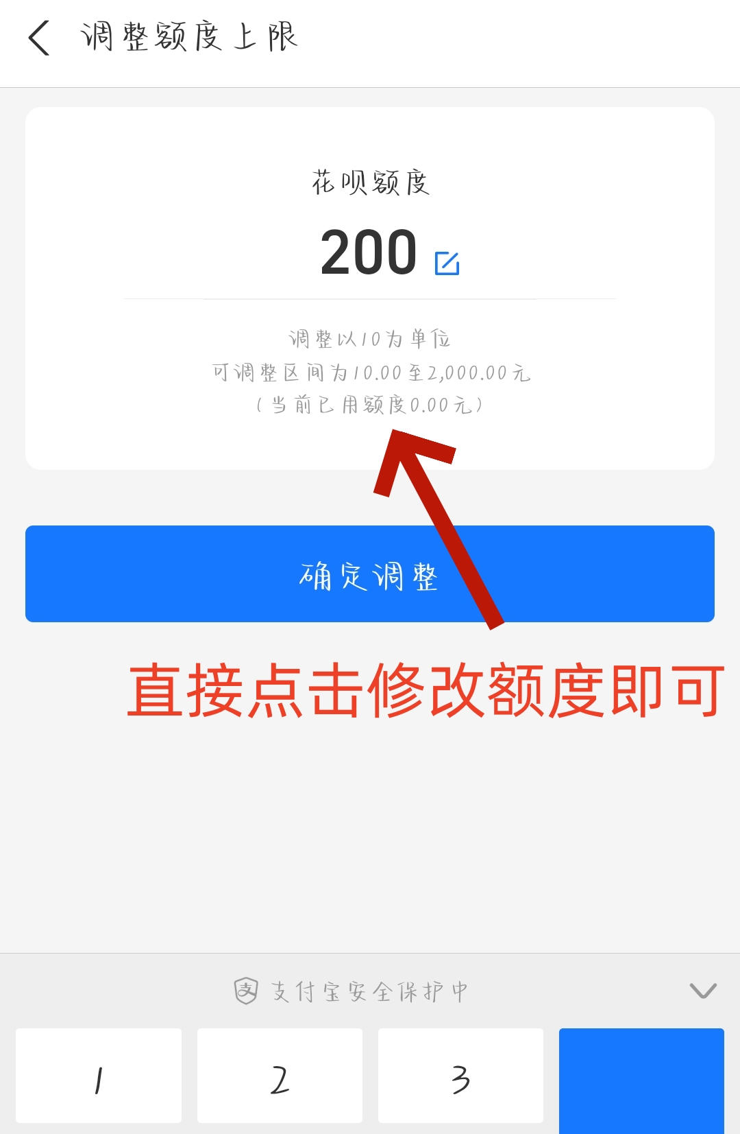 5、现在就可以调整额度上限了,花呗的调整区间是1000~2000元,大家根据自己的实际情况来就行啦。