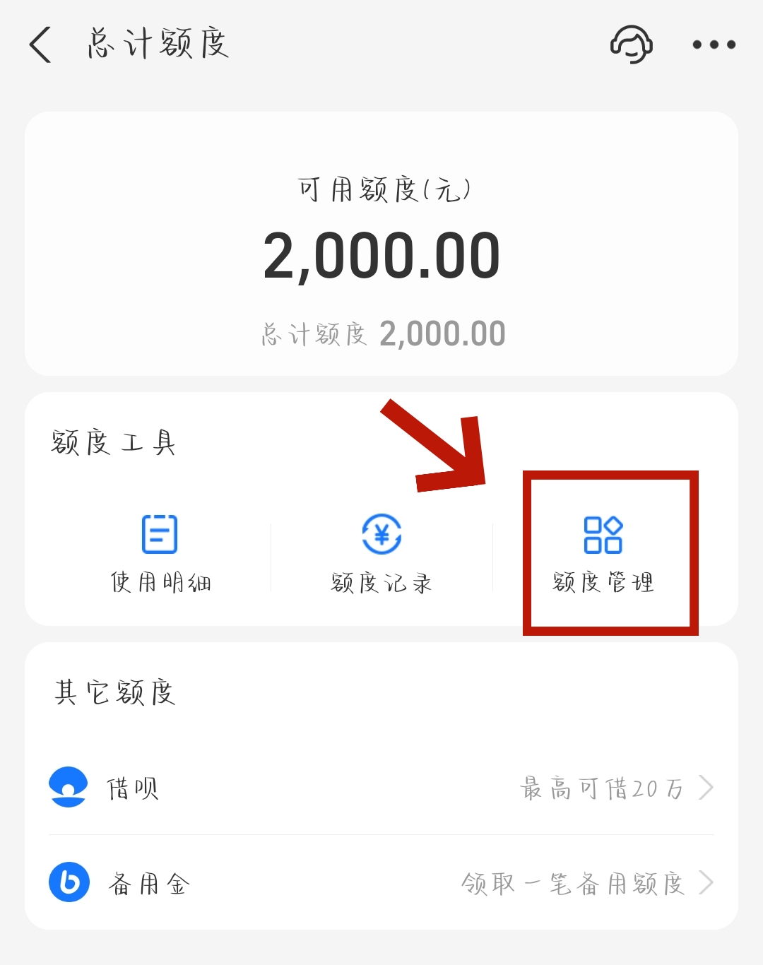 3、进入【总计额度】的页面后,我们点击页面中的【额度管理】。