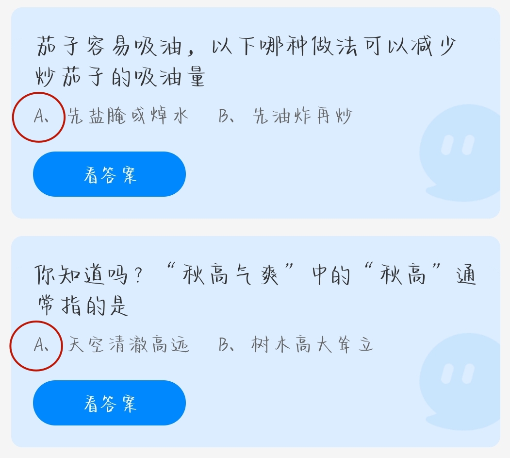 问题1:茄子容易吸油,以下哪种做法可以减少炒茄子的吸油量?