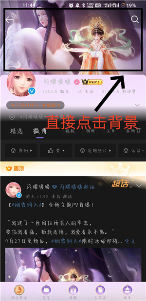 1、搭配师进入闪耀暖暖的官方微博,接着直接点击微博上方的资料背景。