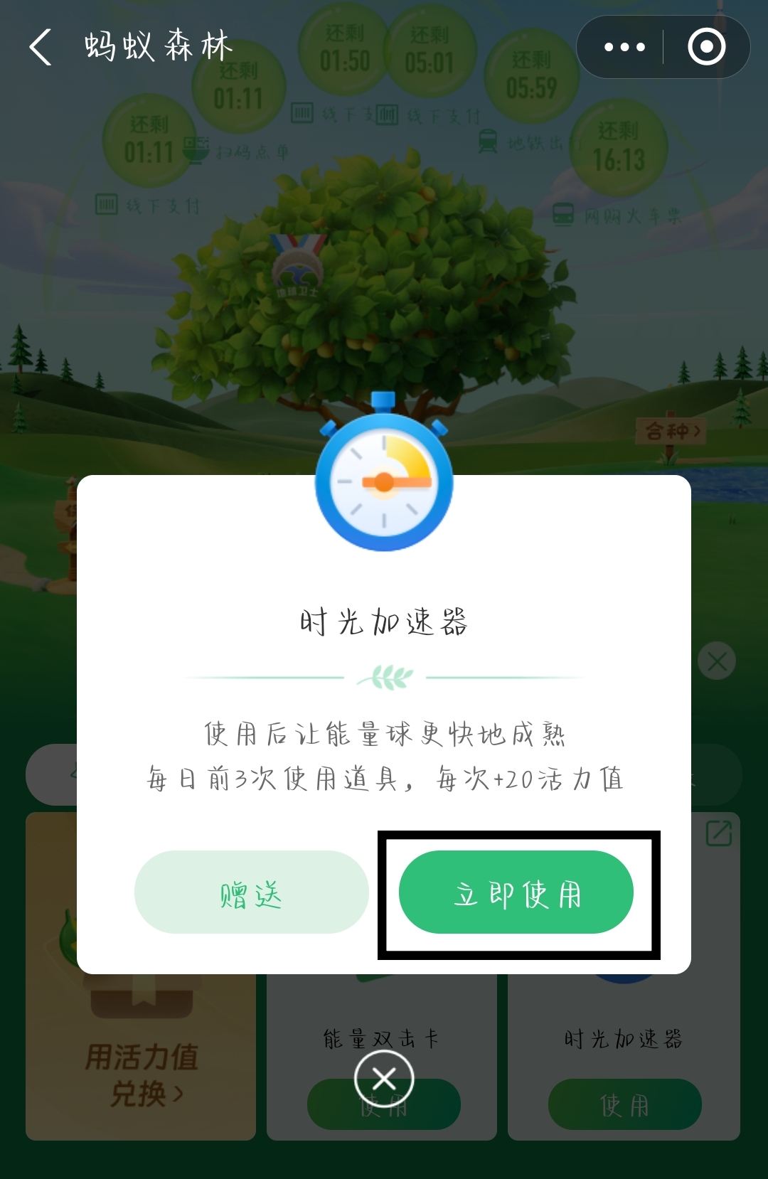 3、点击【立即使用】,让绿色能量成熟吧。
