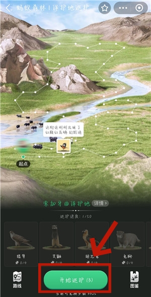 2、进入【保护地】页面后,就可以点击【开始巡护】。