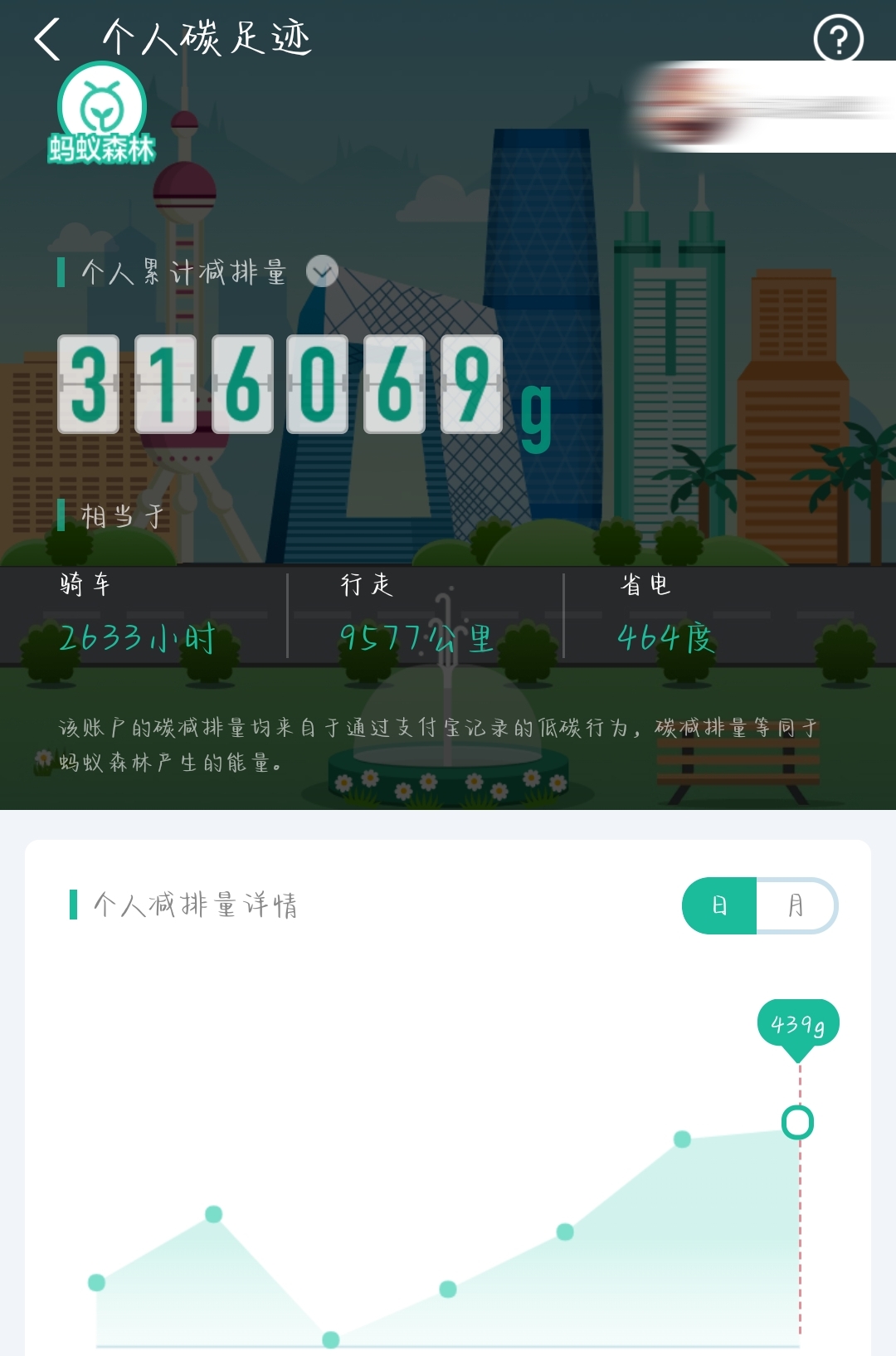 4、这里就是【碳足迹】页面了,我们个人累计的减排量都在这里面,大家都知道了吗?赶紧打开你的个人碳足迹页面吧。