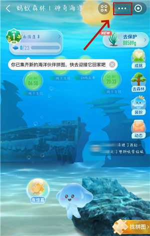 2、点击【海域】后我们就进入神器海洋的页面了,再点击右上角的【···】。