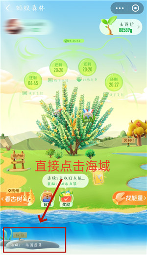 1、首先,我们来到蚂蚁森林的首页,直接点击下方的【海域】。