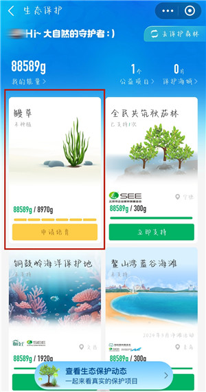 3、接着在【生态保护】页面就可以选择想要培养的植物了,小编用“鳗草”为例子。