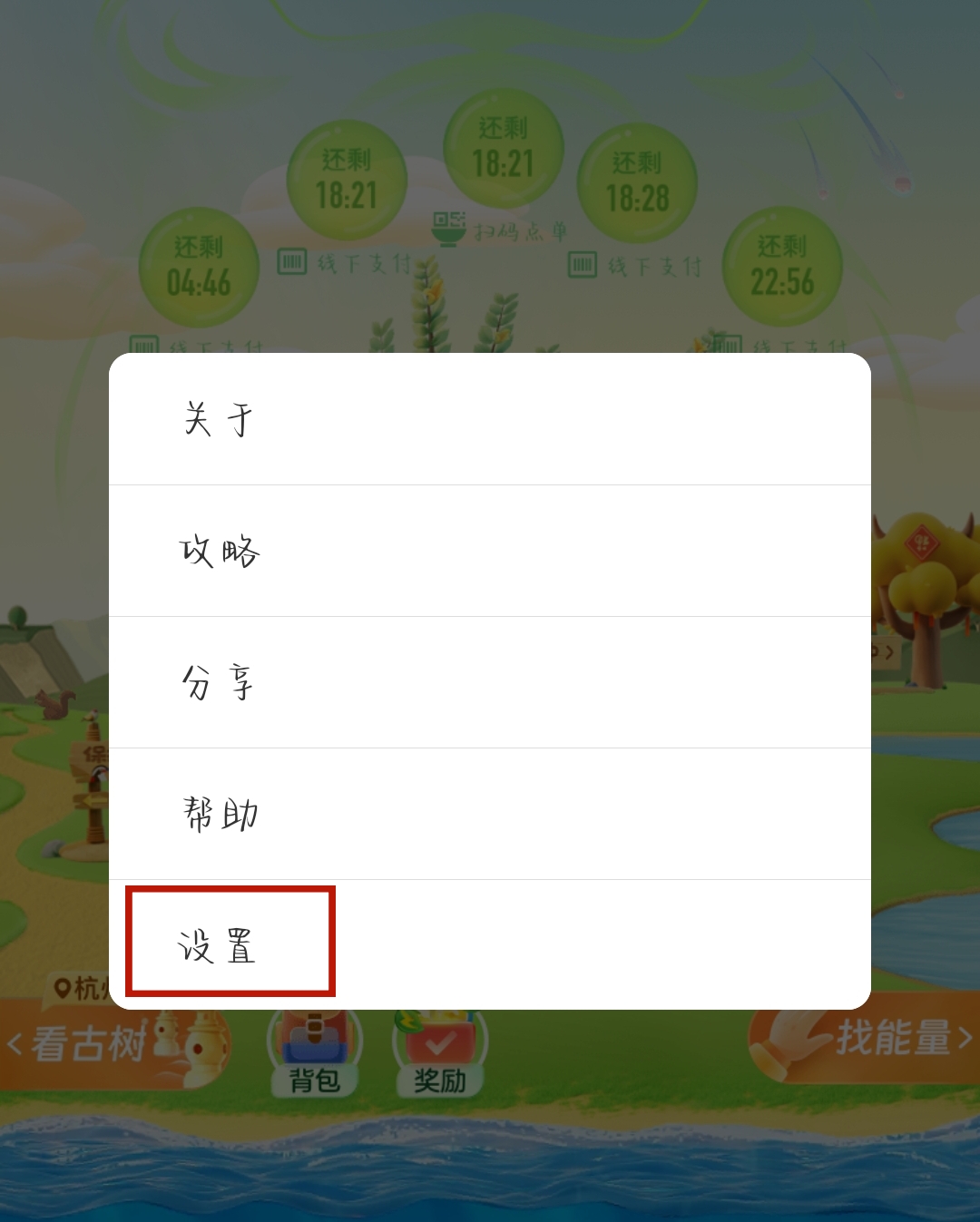 2、在跳出来的几个选项里点击【设置】。