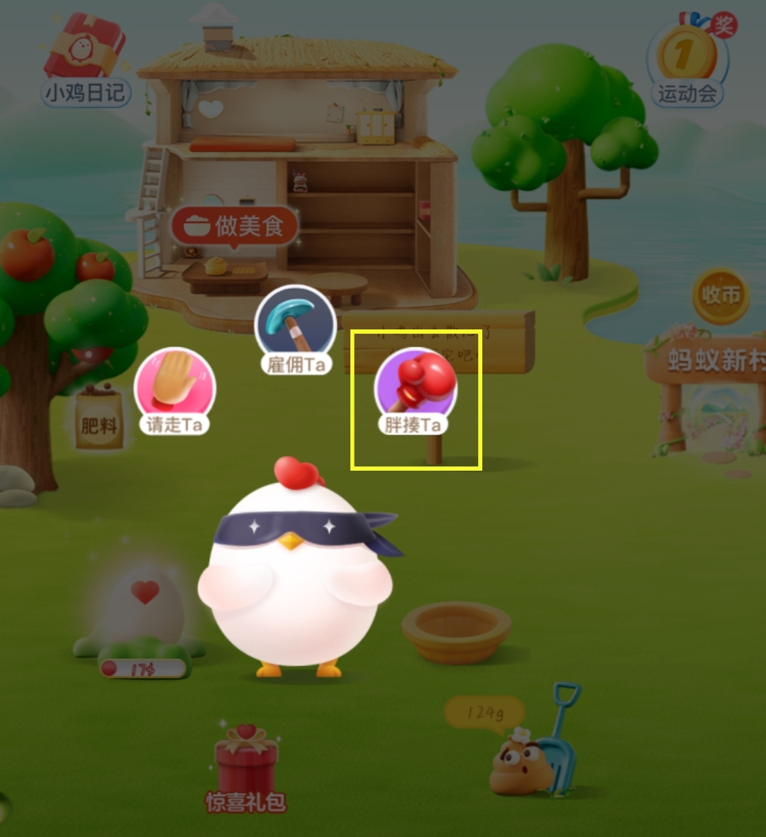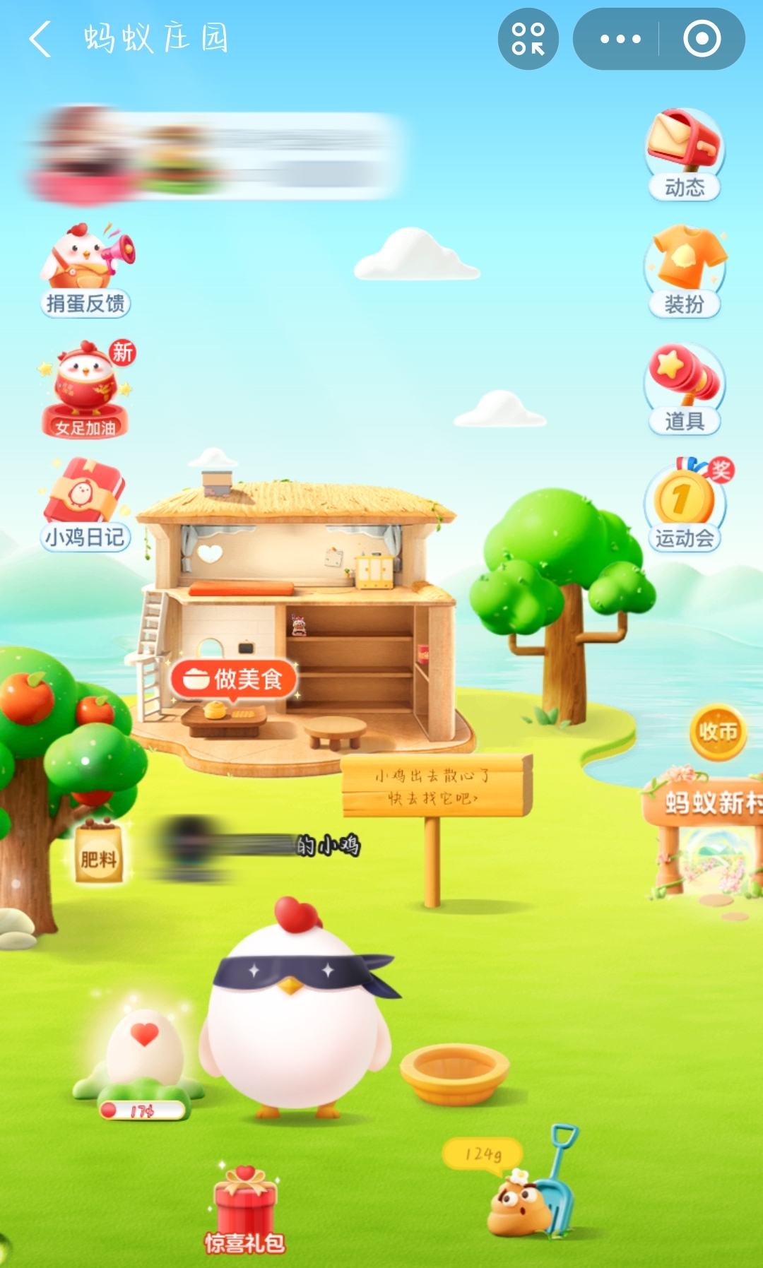 1、首先我们来到蚂蚁庄园,发现别人的小鸡!