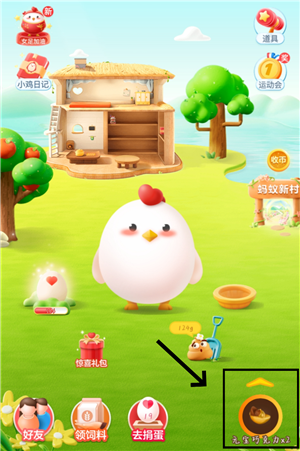 现在我们来喂小鸡,点击右下方的【饲料】。