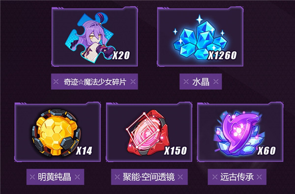 舰长将作战凭证升级到70级,最高可以获得【奇迹魔法少女*20】、【水晶*1260】、【明黄纯晶*14】、【聚能·空间透镜*150】、【远古传承*60】。