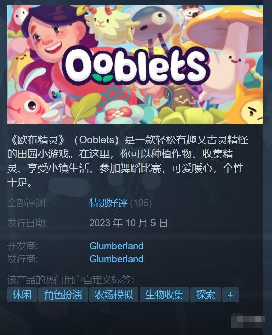 之前在Epic平台独占了3年的农场模拟游戏《Ooblets(官方中文名:欧布精灵)》最近终于登陆了Steam平台,目前它已经有100多条Steam玩家评价,好评率88%,其可爱的画风和玩法受到玩家称赞。随着Steam版发售,该游戏也追加了中文支持,不过目前还存在一些翻译问题。