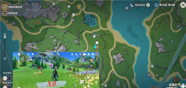 2、传送到图上锚点,这里可以采集3个柔灯铃。