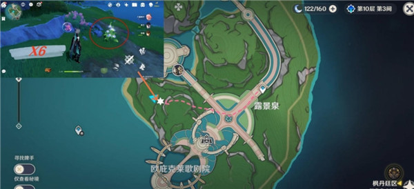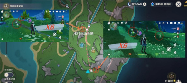 1、传送到露景泉的锚点,然后沿着虚线向西南边走去,可以采到6个。