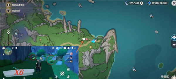 4、下面靠海的山上,我们从图上的锚点过去,这里有6个柔灯铃。