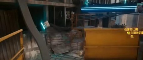 2、右转之后一直向前穿过障碍物来到一个钢铁平台,平台对面是一条竖铁板。