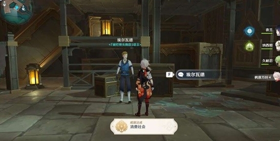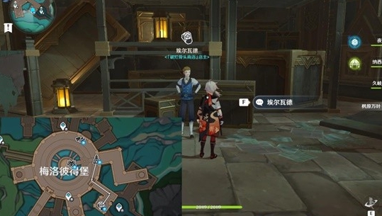 点击埃尔瓦德与他对话,对话中选择【我要购物】。
