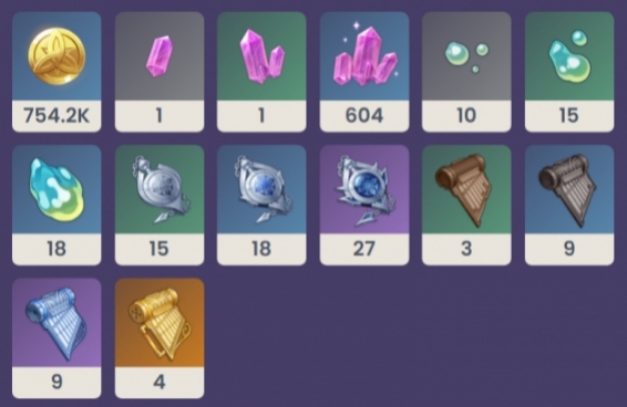 以下就是水仙十字之剑的突破材料了,旅行者们可以早早准备起来啦!