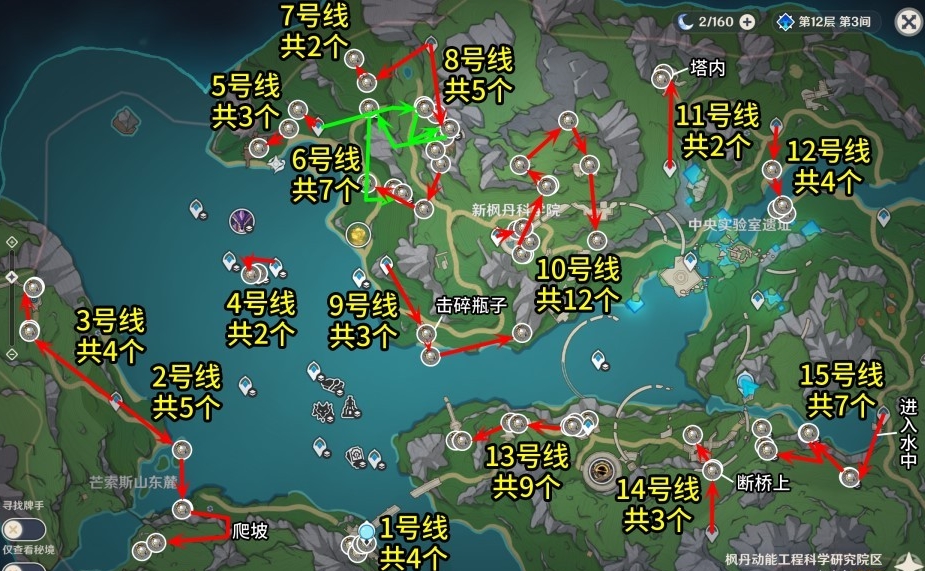 2、以下就是子探测单元的推荐采集路线啦,这个材料的分布还是很多的,大家现在就行动起来吧。