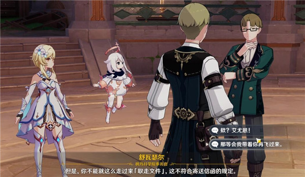 1、首先我们来到枫丹科学院,在靠近任务地点后就会自动进入和NPC艾尤恩的对话了。