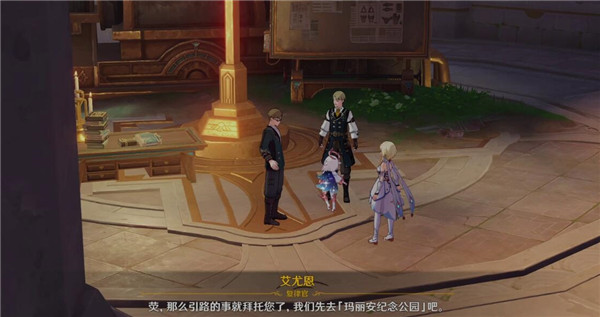 2、对话结束后,艾尤恩需要去【玛丽安纪念公园】拍照,我们和他一起去。