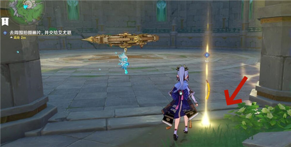 5、跟随指引来到拍照地点,我们要用派蒙菜单里的照相机拍照!!!
