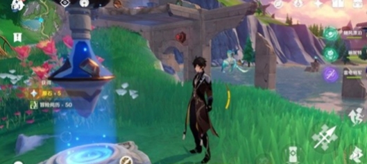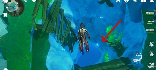 2、这个角色传送过来的场景了,触发【海渊封缠的乖离光】任务需要跳进后面的水里。