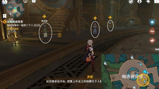 2、根据任务的要求我们继续询问在场的3个NPC。